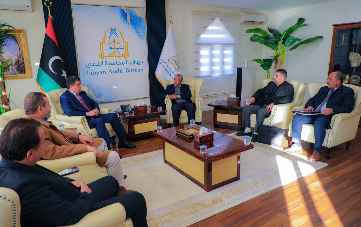 عقد رئيس ديوان المحاسبة خالد شكشك ومدراء الإدارات المختصة بالديوان، اجتماعاً مع رئيس مجلس إدارة شركة البريقة لتسويق النفط والغاز إبراهيم أبوبريدعة، بمقدر ديوان المحاسبة في طرابلس.