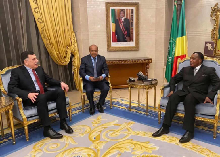 وأفاد المكتب الإعلامي لرئيس المجلس الرئاسي، بأن المحادثات التي جرت في القصر الجمهوري بالعاصمة الكونغولية برازفيل، تناولت مستجدات الأوضاع في ليبيا والعلاقات الثنائية بين البلدين الصديقين.