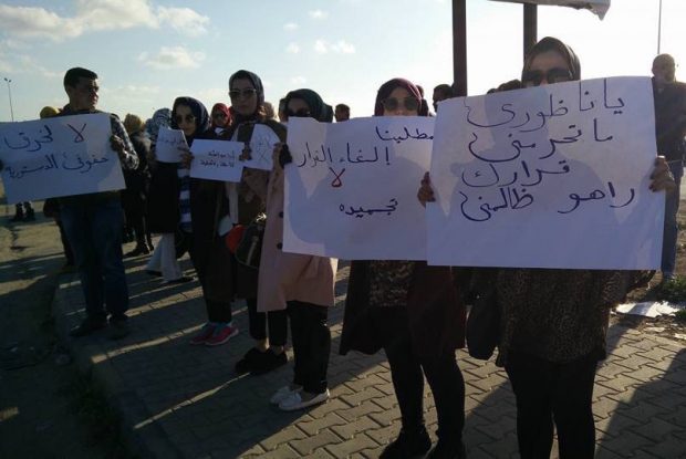ونظّم نشطاء حقوق المرأة تظاهرة في ساحة الكيش في بنغازي احتجاجا على القيود المفروضة على السفر.