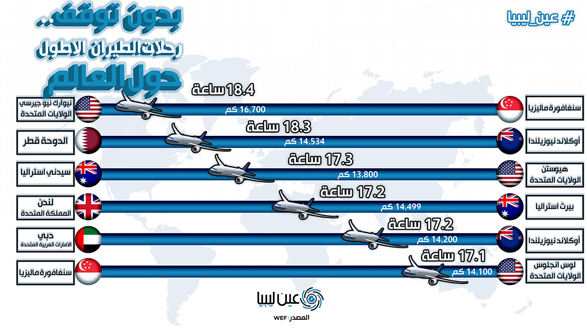رحلات الطيران الأطول حول العالم
