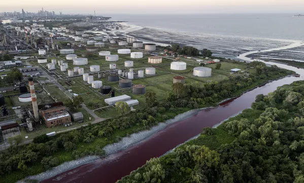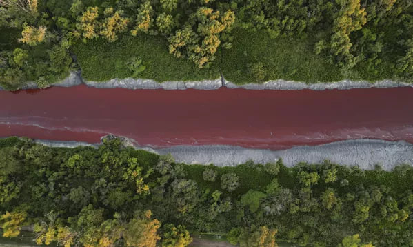 في كارثة طبيعية غير مسبوقة، نشرت وكالة “اسوشيتد برس”، لقطات جوية تظهر لونا قرمزيا ينتشر عبر مجرى مائي ويندمج مع نهر “ريو دي” لا بلاتا في الأرجنتين، في مشهد يشبه “مجرى دموي”.