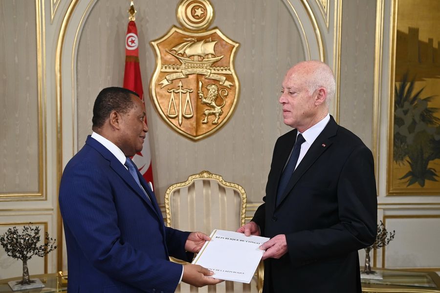 جاء ذلك خلال استقبال الرئيس سعيد لوزير الشؤون الخارجية الكونغولي جون كلود غاكوسو، الذي حمل رسالة خطية من قبل ، رئيس جمهورية الكونغو ورئيس اللجنة رفيعة المستوى للاتحاد الإفريقي بشأن ليبيا دنيس ساسو نغيسو.
