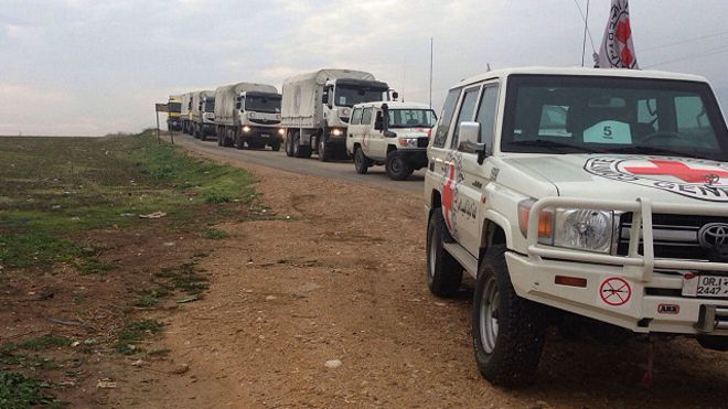 وكانت قوافل مساعدات غذائية بإشراف الهلال الأحمر السوري والأمم المتحدة قد أدخلت إلى بلدتي الفوعة وكفريا 30 شاحنة من المساعدات الغذائية والطبية على دفعتين تزامنا مع إدخال 90 شاحنة إلى بلدة مضايا التي تحاصرها القوات الحكومية.
