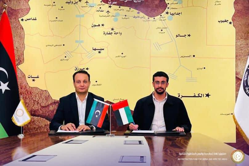 وقع المدير التنفيذي لصندوق إعادة إعمار درنة والمدن والمناطق المتضررة بالقاسم خليفة حفتر، أمس السبت، حزمة من المشاريع في مدينة درنة مع الشركة الإماراتية “GLOBAL CONTRACTING”.