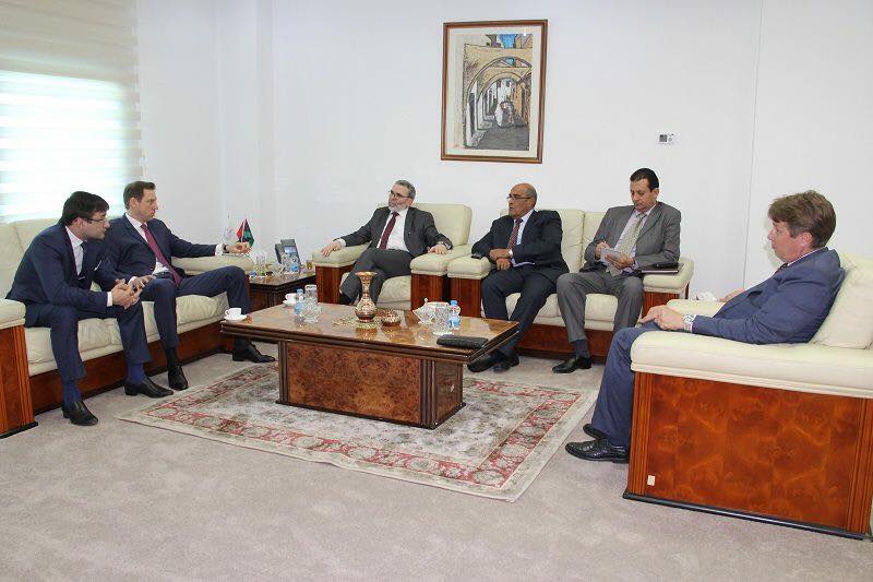 واستقبل المهندس مصطفى صنع الله رئيس مجلس إدارة المؤسسة الوطنية للنفط السيد بانوف رومان والوفد المرافق ظهر يوم الاثنين الموافق 14 مايو 2018. حضر الاجتماع السادة أبو القاسم شنقير عضو مجلس الإدارة ومدير عام الاستكشاف والإنتاج بالمؤسسة الوطنية للنفط، وسعادة سفير ليبيا لدى موسكو السيد مصطفى أبو سعيدة، والسيد كمال كريستا من إدارة التعاون بوزارة الخارجية، وصلاح بن علي مدير مكتب التعاون الدولي بالمؤسسة الوطنية للنفط.