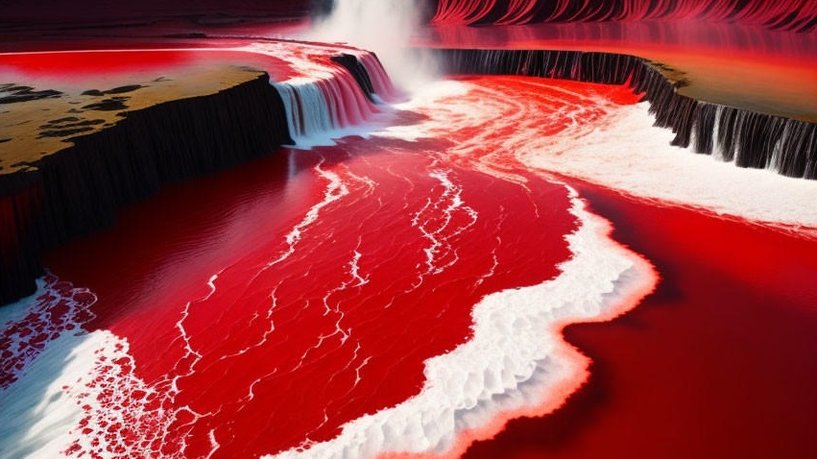 لكن هذه الصورة مركّبة، أما شلالات الدم” فهو اسم يطلق على مساقط مائيّة في القطب الشمالي لونها يشوبه احمرار بسبب تركّز مادّة الحديد.