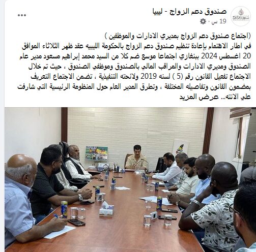 وأكد مدير عام الصندوق، “على أهمية هذه المبادرة في بناء أسر متماسكة وسعيدة، مشيرا إلى أنها تأتي تماشياً مع رؤية الحكومة الليبية في دعم الشباب وتوفير سبل العيش الكريم لهم”.