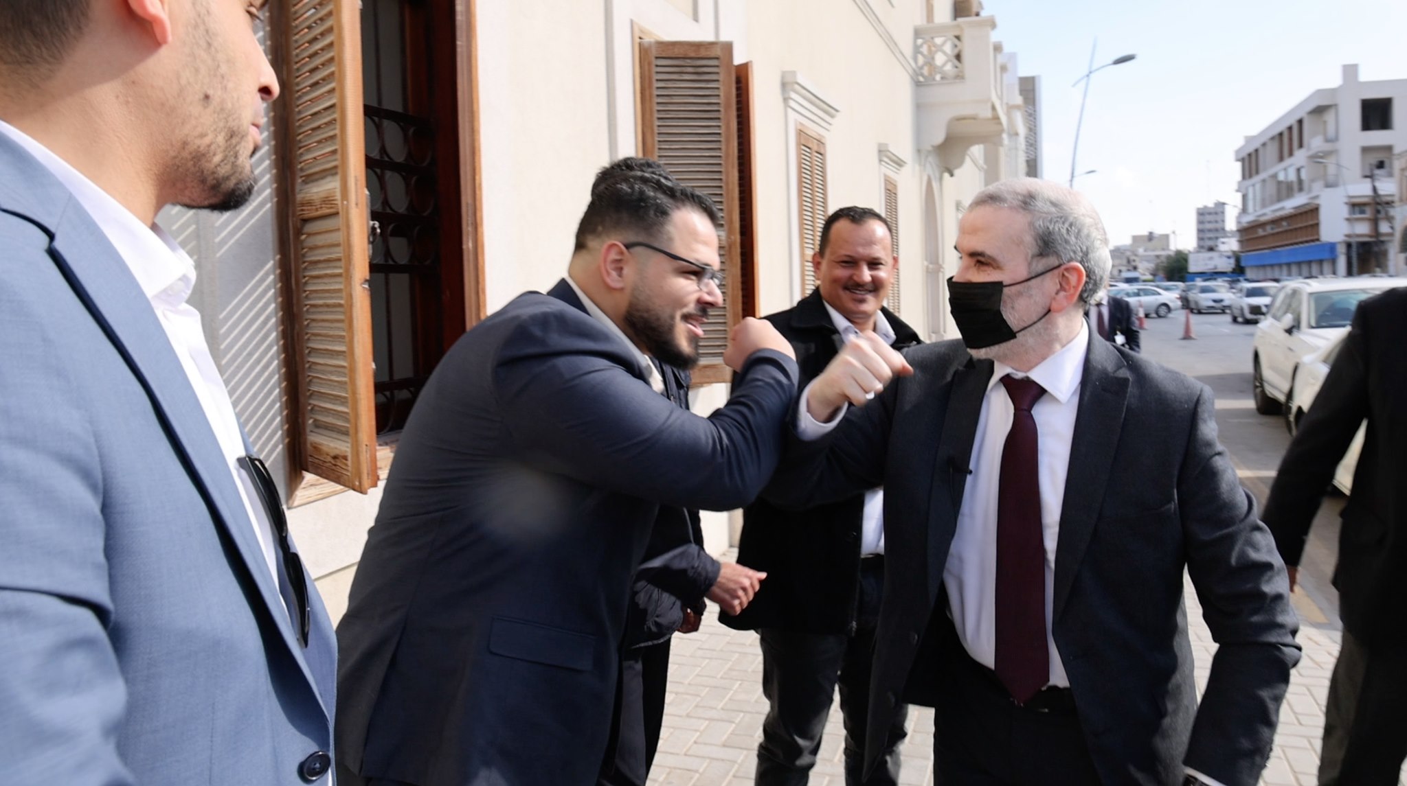 وكان في استقباله بمبنى البلدية الأثري السيد محمود السقوطري عميد بلدية مصراته وأعضاء المجلس البلدي.