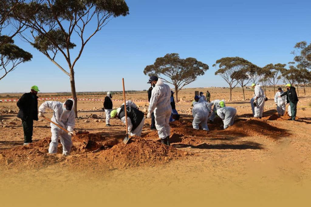 من جانبه قال رئيس الهيئة كمال السيوي في تصريح تلفزيوني، إن إجمالي الجثث المستخرجة من المقابر الجماعية في ترهونة بلغ 323 جثة حتى الآن.