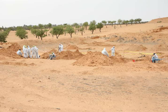 وبعد عمليات الاستكشاف، قامت الفرق بالعمل على عدد 2 مواقع، وتم استخراج عدد 4 جثث مجهولة الهوية.