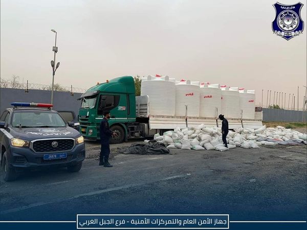 وكانت الشاحنة محملة بنحو 50 ألف لتر من الوقود المهرب لبيعه خارج ليبيا، واستخدم المهربون كمية من الدقيق لإخفاء خزانات الوقود.