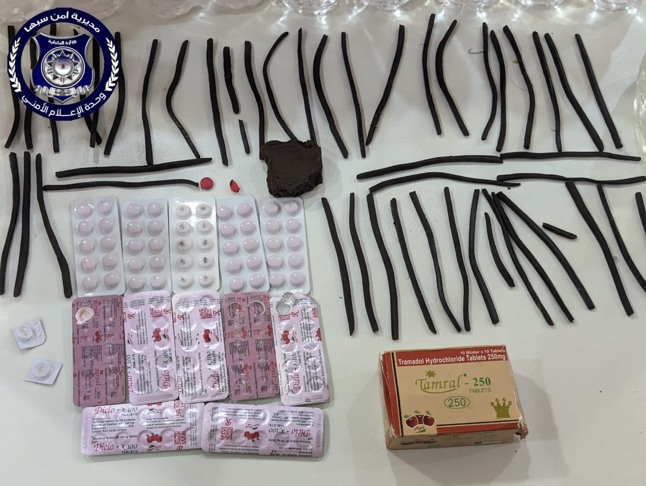 وأضافت أن القوة الأمنية عثرت بحوزة المتهم على حبوب مهلوسة ومخدر الحشيش ومواد مسكرة، وجرى اتخاذ الإجراءات القانونية حياله.
