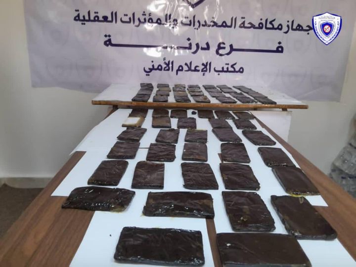 ضبطت العناصر الأمنية بفرع جهاز مكافحة المخدرات والمؤثرات العقلية بمدينة درنة (6) كيلو جرام من مخدر الحشيش، وجدت بحوزة شخص يمتهن بيع وترويج المواد المخدرة.