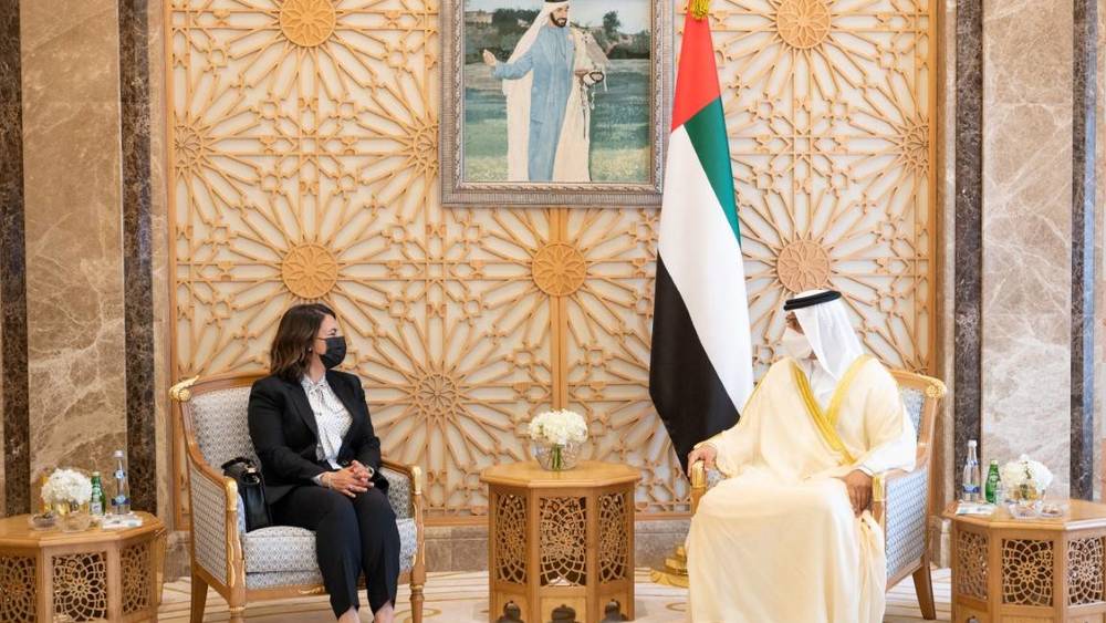 ووصلت نجلاء المنقوش دولة الإمارات، أمس الثلاثاء، وكان في استقبالها، الشيخ شخبوط بن نهيان بن مبارك آل نهيان.