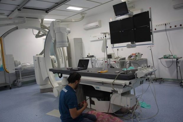 كما سيقوم فريق الصيانة من مهندسين و فنيين من شركة سيمنس بتركيب بعض قطع الغيار جهاز القسطرة القلبية.