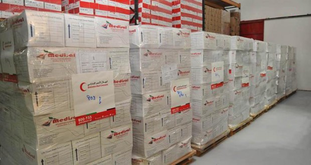 وبحسب وكالة الأنباء الاماراتية، فإن هذه المواد تشمل مستلزمات وأجهزة طبية ومواد إعاشة.
