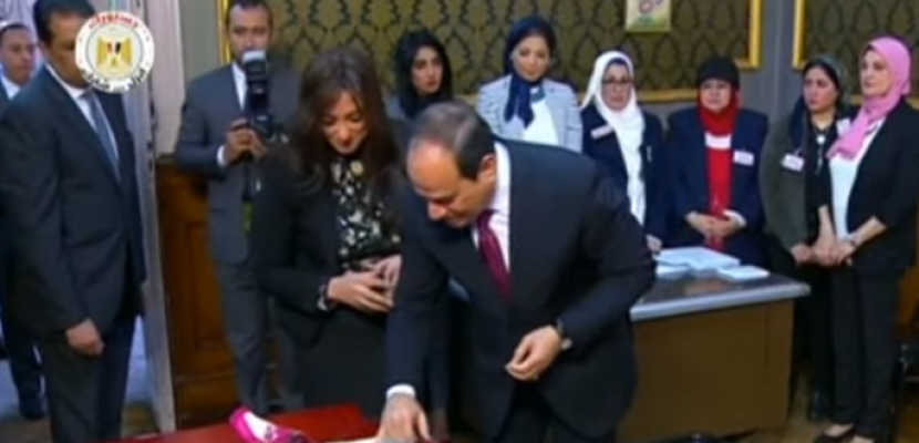 ونقل التلفزيون المصري لقطات للرئيس المصري عبد الفتاح السيسي وهو يدلي بصوته في منطقة مصر الجديدة.