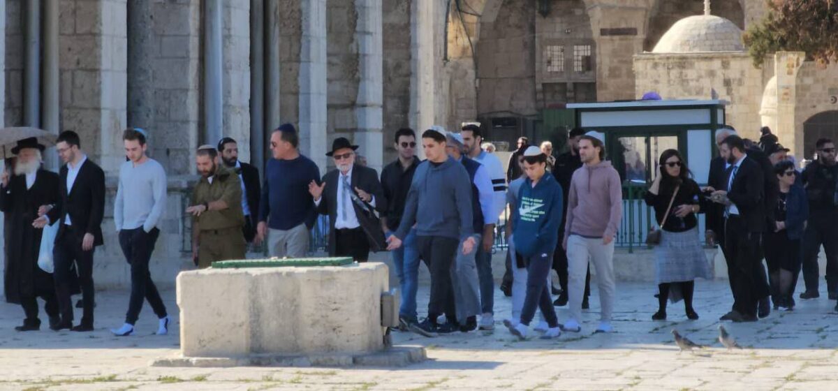 وأفادت دائرة الأوقاف بالقدس بأن أعدادا كبيرة من المستوطنين اقتحموا ساحات الأقصى على شكل مجموعات، كل مجموعة تتألف من 45 مستوطنا، الذين قاموا بجولات استفزازية في ساحات الحرم، وتلقوا شروحات عن “الهيكل” المزعوم، وبعضهم قام بأداء شعائر تلمودية في الجهة الشرقية وقبالة قبة الصخرة قبل أن يغادروا الساحات من جهة باب السلسلة.