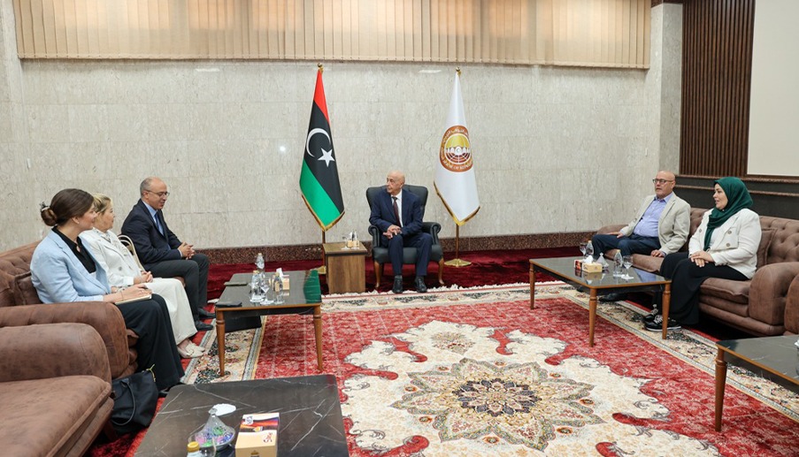 بحث رئيس مجلس النواب عقيلة صالح، مع وفد من مركز الحوار الإنساني مستجدات الأوضاع السياسية في ليبيا.