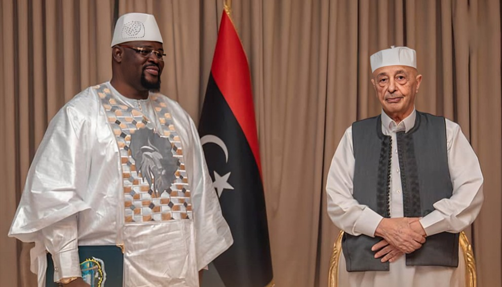 استقبل رئيس مجلس النواب عقيلة صالح، السفير فوق العادة والمبعوث الخاص لرئيس جمهورية ليبيريا المصطفى كوياته.