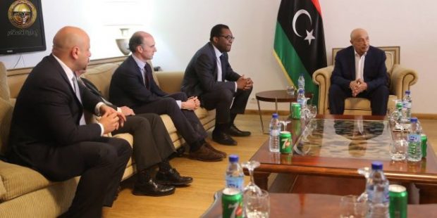 وحضر اللقاء وزير خارجية الحكومة الموقتة محمد الدايري، وعضو لجنة الخارجية في مجلس النواب الصالحين عبدالنبي. وبحث اللقاء آخر المستجدات في المشهد السياسي الليبي، والأوضاع الراهنه في الهلال النفطي.