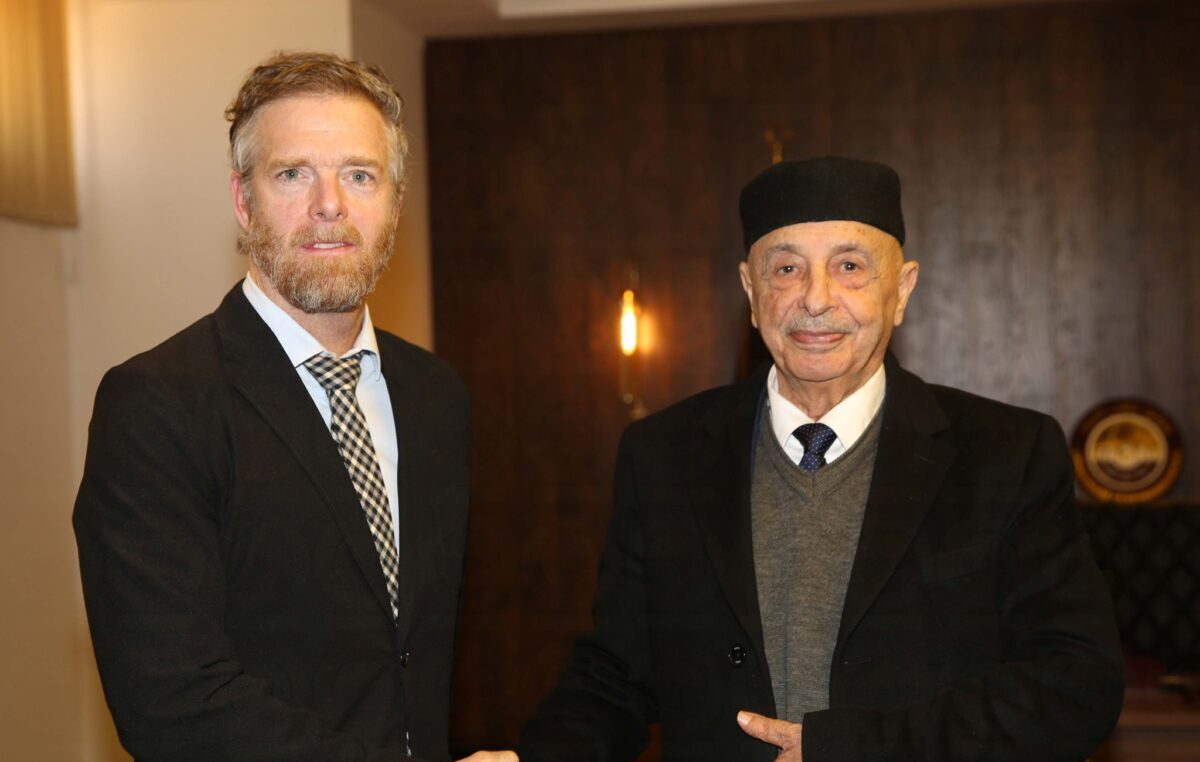 التقى رئيس مجلس النواب المستشار عقيلة صالح، اليوم الثلاثاء، في مكتبه بديوان مجلس النواب في مدينة بنغازي، القائم بالأعمال بسفارة الولايات المتحدة الأمريكية في ليبيا ليزلي أوردمان.