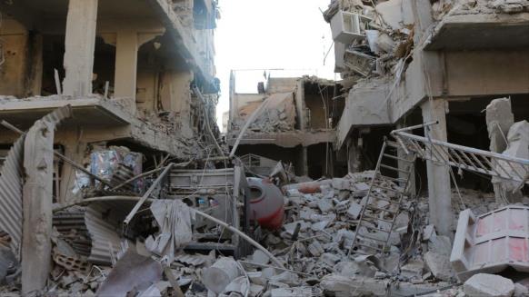 وفي دير الزور شرقي سوريا شن الطيران الحربي السوري اليوم غارات على حيي العمال والحويقة وعلى محيط دوار البانوراما، وتستهدف الغارات صد محاولة تنظيم الدولة التقدم في محيط المطار العسكري والأجزاء المتبقية بيد قوات النظام داخل المدينة.