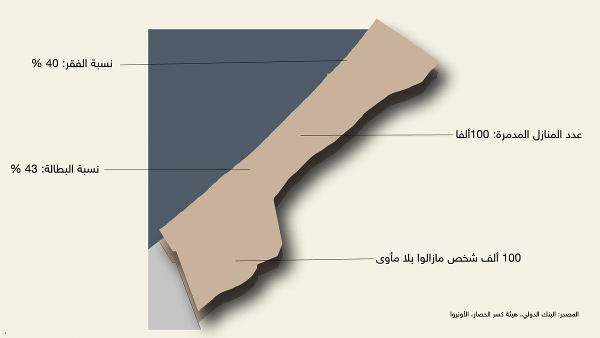 وأشار إلى أن المؤسسات الاقتصادية في القطاع باتت إما متوقفة عن العمل أو تعمل بشكل جزئي في أحسن أحوالها، مشيرا إلى افتقار القطاع إلى متطلبات العمران وخاصة الإسمنت بسبب الحصار الإسرائيلي.