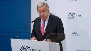 وقال غوتيرش في خطابة الافتتاحي لمؤتمر ميونيخ للأمن العالمي، إن حقبة الحرب الباردة كانت أقل خطورة مما عليه الحال اليوم، حيث بات النظام الدولي غير فاعل، داعيا إلى اعتماد نظام دولي جديد قائم على تعددية الأقطاب وإصلاح نظام مجلس الأمن الدولي.