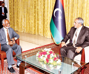 كرتي خلال لقائه الحاسي في طرابلس (أ ف ب)