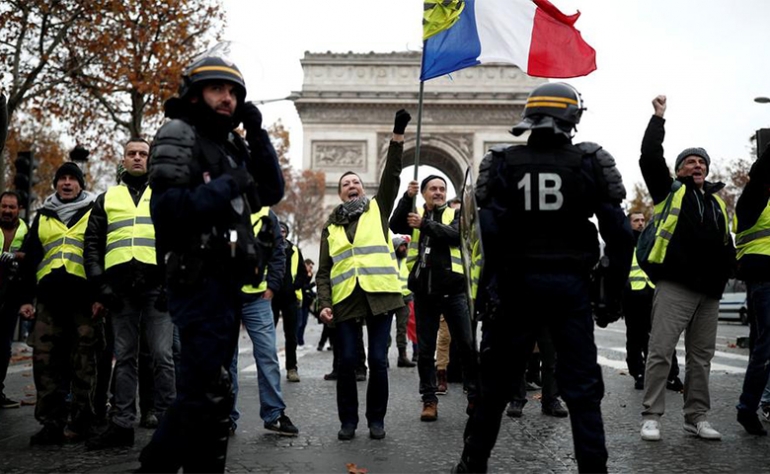 وكانت مجموعات مجموعات “السترات الصفراء” ومجموعات الاحتجاج على إصلاح نظام المعاشات التقاعدية، دعت عبر مواقع التواصل الاجتماعي هذه الليلة إلى احتجاجات تتزامن مع احتفالات رأس السنة في وسط العاصمة، في وقت ينتظر فيه الفرنسيون في كل عام كلمة متلفزة للرئيس الفرنسي تبث عبر الشاشات لتهنئتهم بالسنة الجديدة.