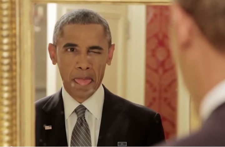 أظهر فيديو تم تداوله مستخدمو موقع “يوتيوب” الرئيس الأمريكي باراك أوباما وهو يؤدي حركات مضحكة أمام المرآة، مرة بإخراج لسانه وأخرى بارتداء نظارة شمسية.
