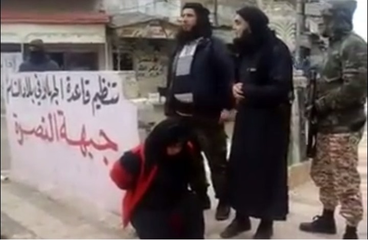 وتداول نشطاء مقطع فيديو يظهر إعدام المرأة وسط مناشدتها للمنفذين بتمكينها من رؤية أبنائها قبل إعدامها، فيما طالب أفراد جبهة النصرة من المرأة التوبة إلى الله، وطلب المغفرة منه.