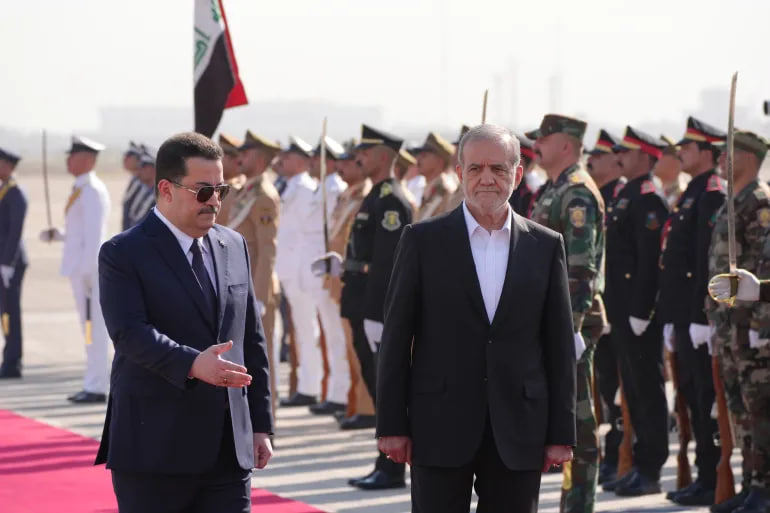تلبية لدعوة رسمية من رئيس الوزراء العراقي محمد شياع السوداني، وصل الرئيس الإيراني مسعود بزشكيان، إلى العاصمة العراقية بغداد، على رأس وفد رفيع، في زيارة تستمر 3 أيام.