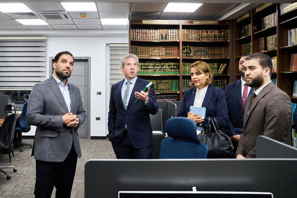 وفي ختام الاجتماع، أجرى القائم بالأعمال، برفقة رئيس الهيئة، جولة ميدانية شملت قاعات التدريب في الأكاديمية الوطنية للتدريب والتطوير، حيث اطلع على أحدث التجهيزات المستخدمة في التدريب، بالإضافة إلى زيارة المكتبة المركزية للهيئة التي تضم مراجع متخصصة في مجالات العمل الرقابي.