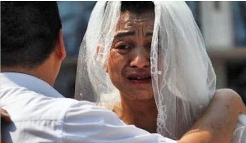بعد أن انفق كل ما لديه من أموال، واستدان الكثير من النقود لمعالجة طفلته الوحيدة التي أصيبت بسرطان الدم عندما كانت في الرابعة من عمرها، اضطر أب صيني إلى لفت الانتباه إلى مأساته بطريقة أخرى، وأخذ يرتدي فستان زفاف نسائي، ويضع أحمر الشفاه ويخرج بهذا الشكل إلى ساحة المدينة الرئيسية. وكان يحمل ملصقا كتب عليه أنه يبحث عن شريك مستعد لدفع تكاليف علاج طفلته.