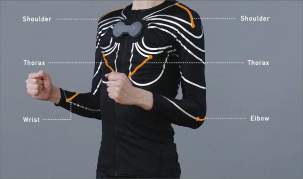 وأطلق على القميص اسم “اجلد الإلكتروني”, وصمم لرصد حرارة الجسم ونسبة الأوكسجين في الدم، وهو مزود بجهاز استشعار كهربائي وبطارية وحاسوب دقيق، ومجس حركة وبلوتوث لإرسال المعلومات عن صحة الفرد إلى الحاسوب وهاتفه الذكي.
