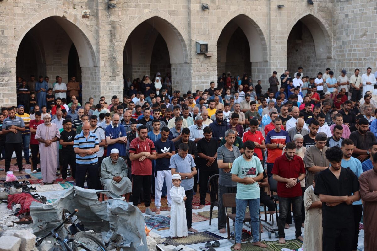 وفي مخيم جباليا، أدى أبناء المخيم صلاة العيد على أنقاض المساجد التي دمرها الجيش الإسرائيلي في رسالة صمود وتحدي لكل أشكال التهجير والتجويع التي تنتهج ضدهم.