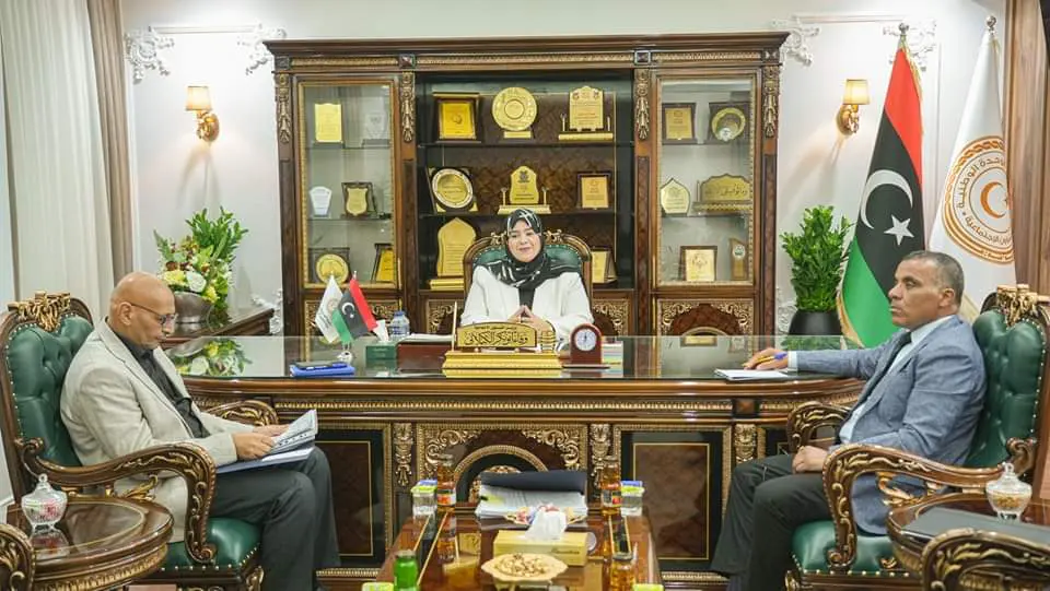 عقد أمس بديوان وزارة الشؤون الاجتماعية اجتماع برئاسة وزيرة الشؤون الاجتماعية وفاء أبوبكر الكيلاني مع كل من إدارة التفتيش والمتابعة بديوان مجلس الوزراء ومندوبي عن مهجري المنطقة الشرقية وبحضور مدير مكتب التخطيط رئيس لجنة المهجرين بالوزارة لمتابعة ملف المهجرين .