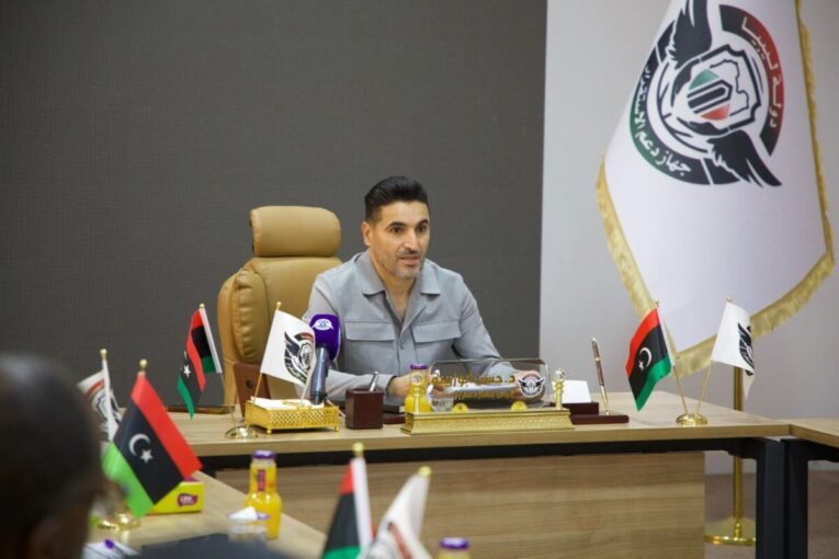 عقد رئيس جهاز دعم الاستقرار المُكلّف من المجلس الرئاسي حسن أبوزريبة، الأحد، اجتماعًا رسميًا ضمّ مدراء المكاتب والإدارات التابعة للجهاز.