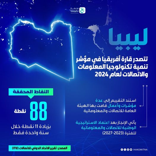 ذكر تقرير صادر عن الاتحاد الدولي للاتصالات، أن “ليبيا تصدرت القارة الإفريقية، في “مؤشر تنمية تكنولوجيا المعلومات والاتصالات” لعام 2024″.