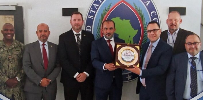 قام وفد من وزارة الداخلية بحكومة الوحدة الوطنية، برئاسة لواء خالد المبروك عبدالنبي رئيس الجهاز، بزيارة عمل رسمية إلى مقر القيادة الأمريكية في إفريقيا (AFRICOM) بمدينة شتوتغارت الألمانية، وذلك في إطار جهود تعزيز التعاون الدولي والارتقاء بقدرات جهاز مكافحة المخدرات والمؤثرات العقلية.