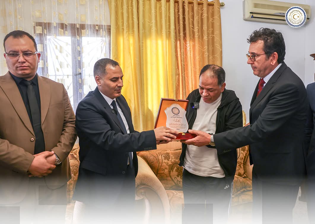 وجاءت الزيارة تكريماً لمسيرته الوطنية الحافلة، وتقديراً لما قدمه من عطاء وجهود طيلة سنوات عمله في السلك الدبلوماسي، من خلال المناصب التي تقلدها داخل ليبيا وخارجها.