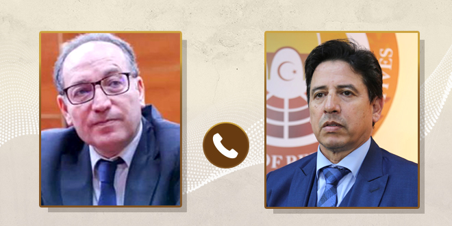 أجرى رئيس لجنة الشؤون الخارجية بمجلس النواب يوسف العقوري، اتصالاً هاتفياً مع سفير تونس لدى ليبيا “اسعد العجيلي”.