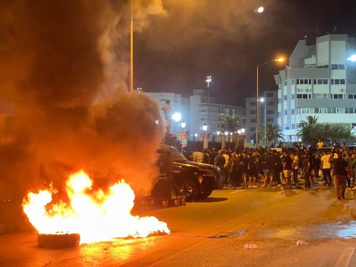 أضرم محتجون النيران أمام مبنى رئاسة مجلس وزراء حكومة الوحدة الوطنية في العاصمة طرابلس تنديدا بلقاء وزيرة الخارجية الموقوفة نجلاء المنقوش مع وزير الخارجية الإسرائيلي.
