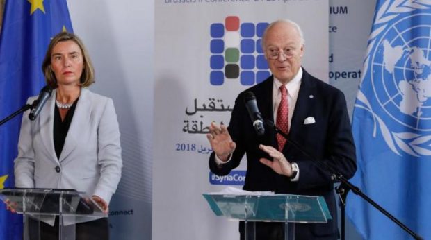 وقال مبعوث الامم المتحدة الخاص الى سوريا ستافان دي ميستورا في مؤتمر صحافي مع وزيرة خارجية الاتحاد الاوروبي فيديريكا موغيريني “نحن كنا ولا نزال قلقين إزاء الجانب الانساني في ادلب، لانها التحدي الكبير الجديد مع 2,5 مليون شخص”.