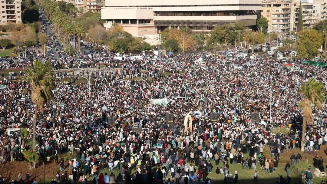 وأظهرت عدة صور ومقاطع الفيديو، “حضورا لافتا للسوريين في محيط الجامع الأموي وداخله ظهر اليوم، وبعد انتهاء صلاة الجمعة في الأموي وعموم مساجد دمشق حيث توجه السكان إلى ساحة الأمويين مركز الاحتفالات الرئيسية في دمشق”.