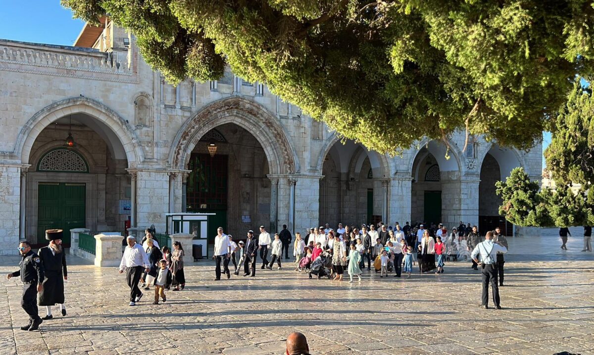 وأدى مئات المستوطنين طقوسًا تلمودية عند حائط البراق غرب المسجد الأقصى وعند باب القطانين، ورقصات جنونية عند باب الأسباط، حاملين “القرابين النباتية”، كما أدى مستوطن ما يسمى “السجود الملحمي” على عتبة باب السلسلة.