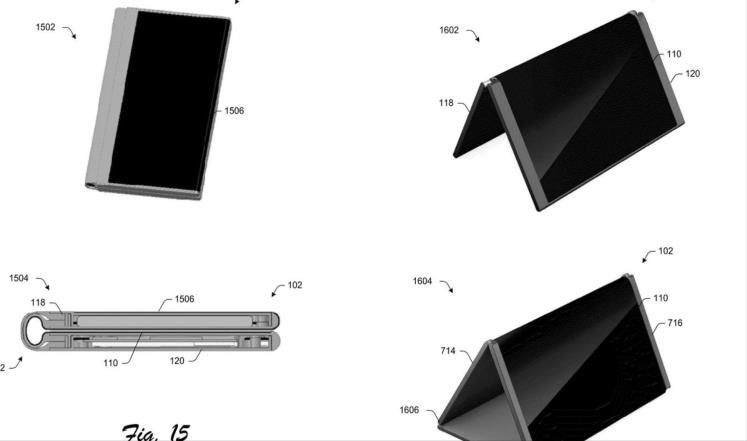 تسعى شركة البرمجيات الأميركية مايكروسوفت إلى تسجيل براءة اختراع لجهاز جديد قابل للطي يحتوي على شاشة عرض ومفاصل تثبيت مرنة بحيث يمكن تحويله من هاتف ذكي إلى حاسب لوحي.