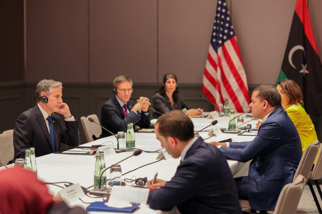 التقى رئيس حكومة الوحدة الوطنية عبد الحميد الدبيبة، اليوم الخميس، بوزير خارجية الولايات المتحدة أنتوني بلينكن.